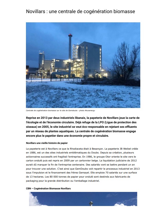Inauguration de la Centrale Biomasse de Novillars (CBN) 15/02/2019